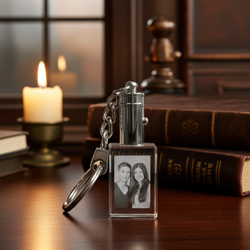 Trage deine liebsten Erinnerungen immer bei dir – mit einem personalisierten Schlüsselanhänger. Dein Foto wird mit präziser Lasertechnik als detailgetreue 2D-Gravur in hochwertiges Glas eingraviert. Wähle aus verschiedenen Formen und gestalte ein Accessoire, das dich täglich begleitet.